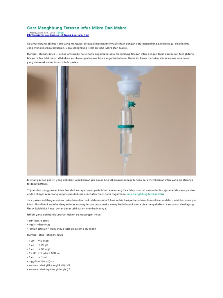 Cara Menghitung Tetesan Infus Mikro Dan Makro