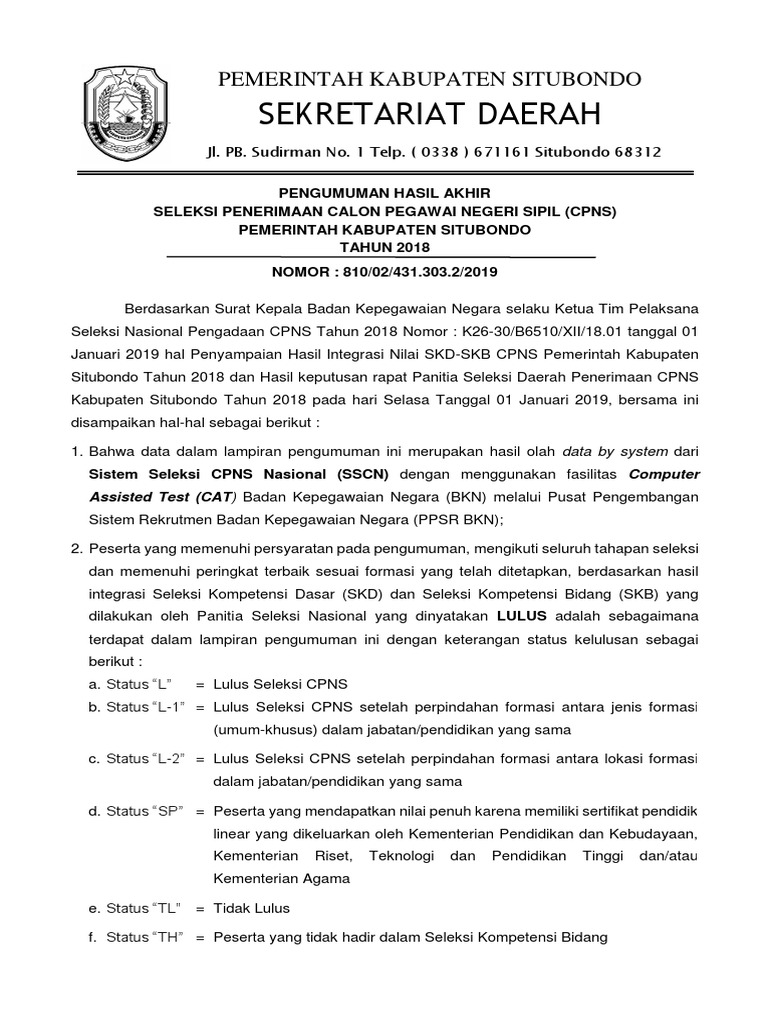 Pengumuman Hasil Akhir Tes Skd Skb Cpns Kab Situbondo 2019